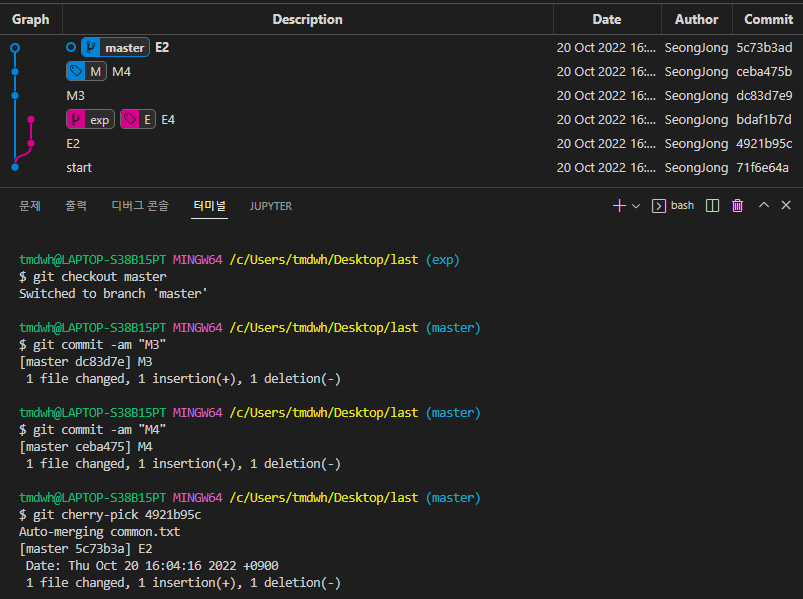 어떤 이유에 의해 master가 E2만 병합하고 싶을때가 있음
