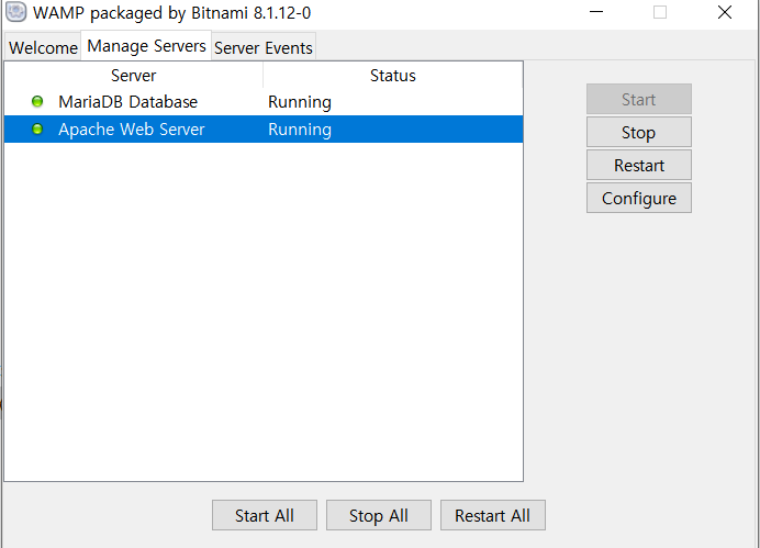 폴더 위치 => C:\Bitnami\wampstack-8.1.12-0\manager-windows.exe 이렇게 실행이 가능하다