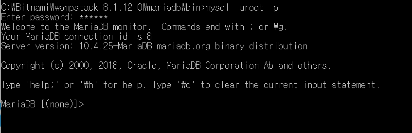 cd C:\Bitnami\wampstack-8.1.12-0\mariadb\bin