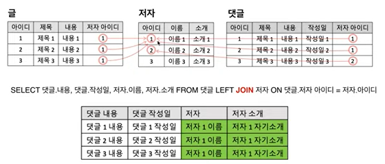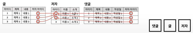 글에 대한 정보가 필요하다고 하면 글의 테이블만 가지고 오면된다 (메모리 효율적)