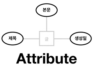 Attribute -> column : 구체적인 데이터 (동그라미)