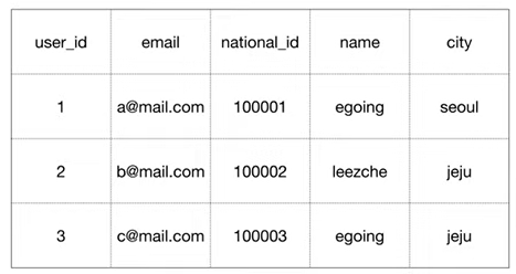 행이 추가될 때마다 자동으로 1씩 증가시켜서 중복되지 않는 값을 부여하는 방법도 있다(Artificial Key- 인조키)