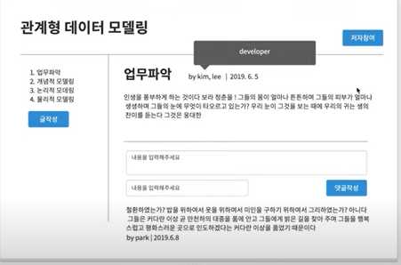 2. 개념적 데이터 모델링 : 어떤 개념이 있고 어떻게 상호작용하는지를 파악 (ERD를 뱉는다)